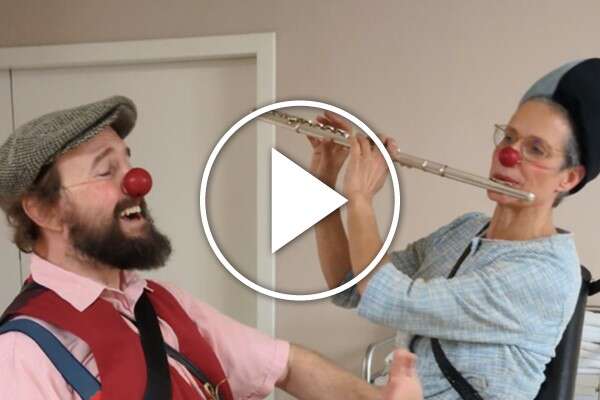 Clown Harald und Clownin Mathilde zaubern weihnachtliche Stimmung ins Pflegewohnhaus Simmering in Wien.