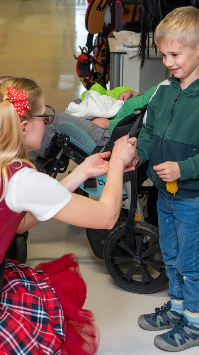 Der kleine Simon steht mit seiner Mama am Gang der Station reKIZ, dem Neurologischen Rehabilitationszentrum der Uniklinik Salzburg, und macht große Augen. Zwei bunte Clowns kommen musizierend auf ihn zu. Clownin Josefine spielt auf ihrer Ukulele ein langsames, stimmungsvolles Lied, während sie mit ihrem Clownpartner Rollo näherkommt. Man merkt dem beeinträchtigten Buben die Freude an, als sich die beiden Clowns vor ihn hinknien und das Lied nur für ihn spielen. Simon streckt Clown Rollo die Hand entgegen, als Clownin Josefine ein flotteres Lied anstimmt. Die beiden beginnen miteinander zu tanzen.