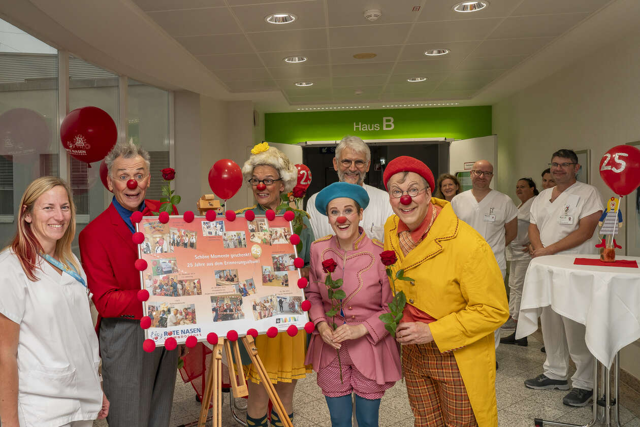 Seit einem Vierteljahrhundert bringen ROTE NASEN Clowns Freude und Humor in die Kinderabteilung im Krankenhaus der Barmherzigen Brüder in Eisenstadt. 1.623 Mal haben die Clowns seither Leichtigkeit und Heiterkeit zu kleinen und großen Patient*innen gebracht und sie bei über 58.670 Begegnungen mit der Kraft des Humors gestärkt.